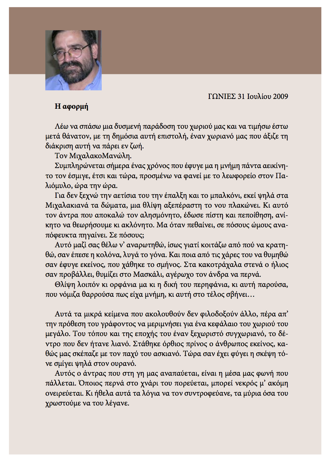 Με εκφράζει πλήρως η επισήμανση του Παντελή Πρεβελάκη από